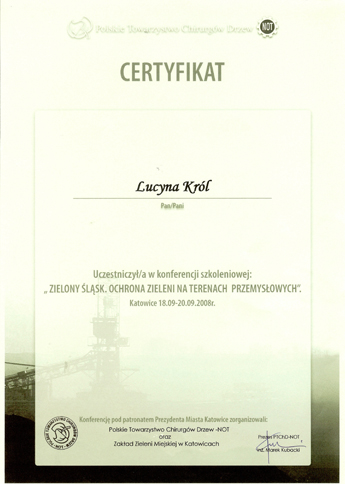 Certyfikat udziału w konferencji: "Zielony Śląsk. Ochrona zieleni na terenach przemysłowych"